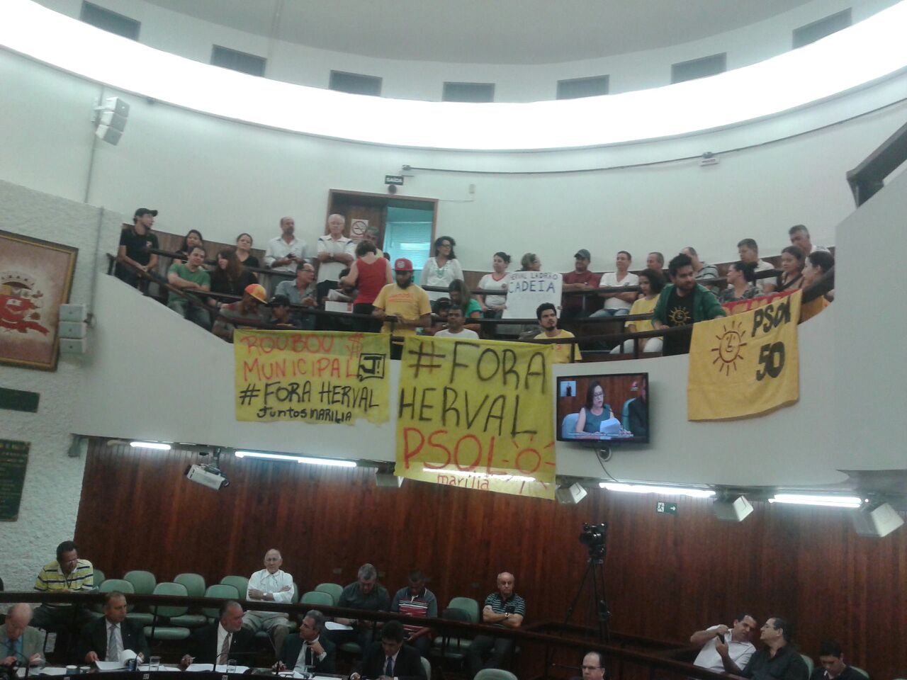 O presidente da Câmara Municipal de Marília, Herval Rosa Seabra (PSB), suspendeu a sessão ordinária desta segunda-feira (17), após ficar irritado com protestos realizados nas galerias da casa legislativa.