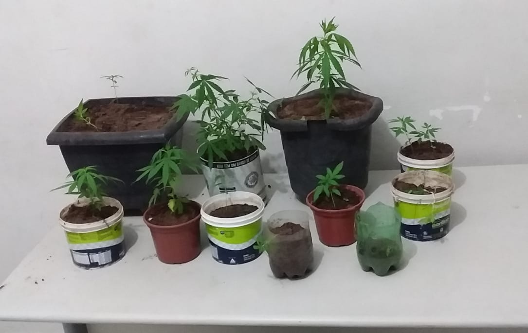 Após a detenção dele, em uma breve busca no quintal da residência, os policias localizaram um total de 17 plantas de maconha em vasos.