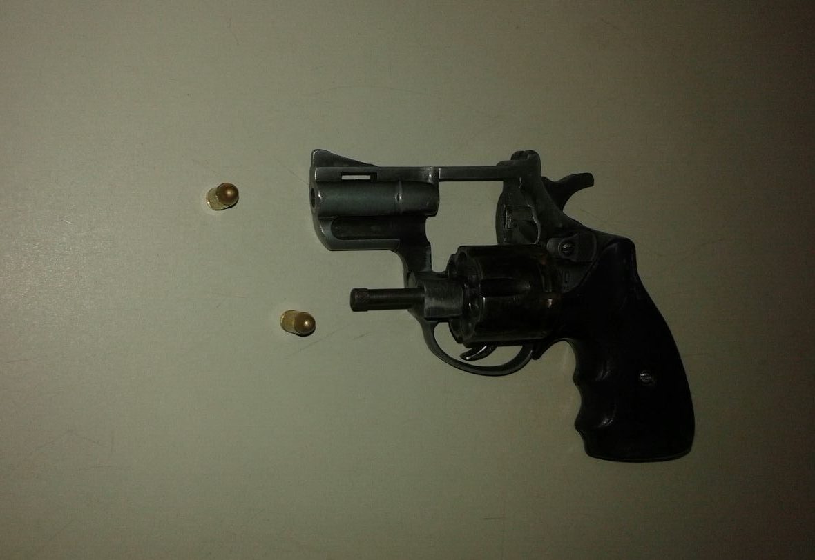 Ação rápida de um dos policiais desarmou o acusado, que ainda estava com o revólver na cintura. A arma estava municiada com dois projéteis intactos.