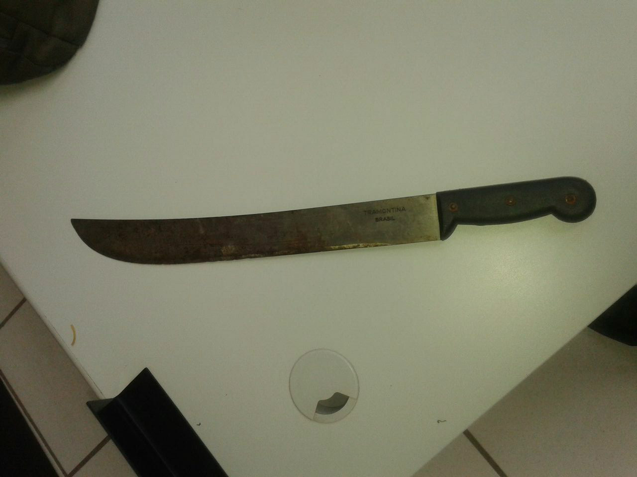 O homem, que teria ido buscar seu filho, desceu do Fiat Pálio e partiu para cima da vítima com um facão, chegando a desferir um golpe com as ‘costas’ da arma.