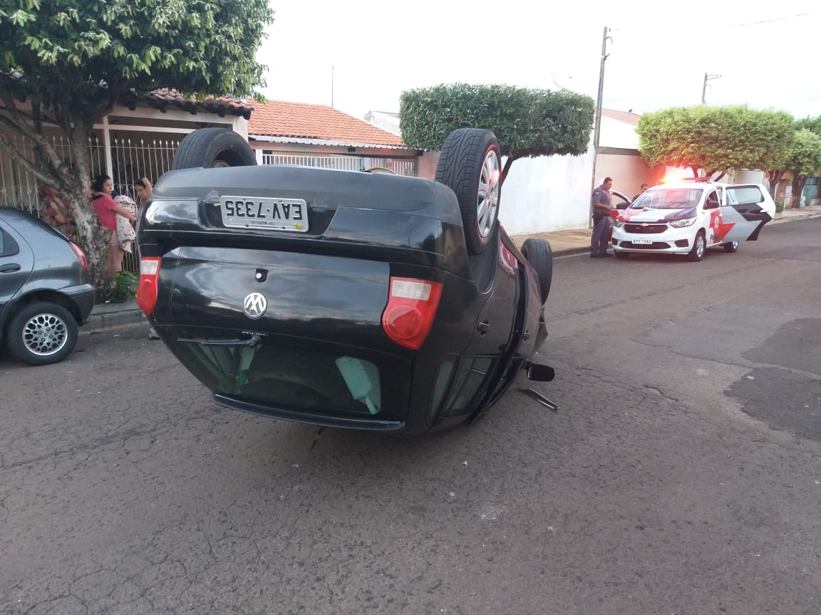 Carro capotado na zona Norte de Marília (Foto: Divulgação)