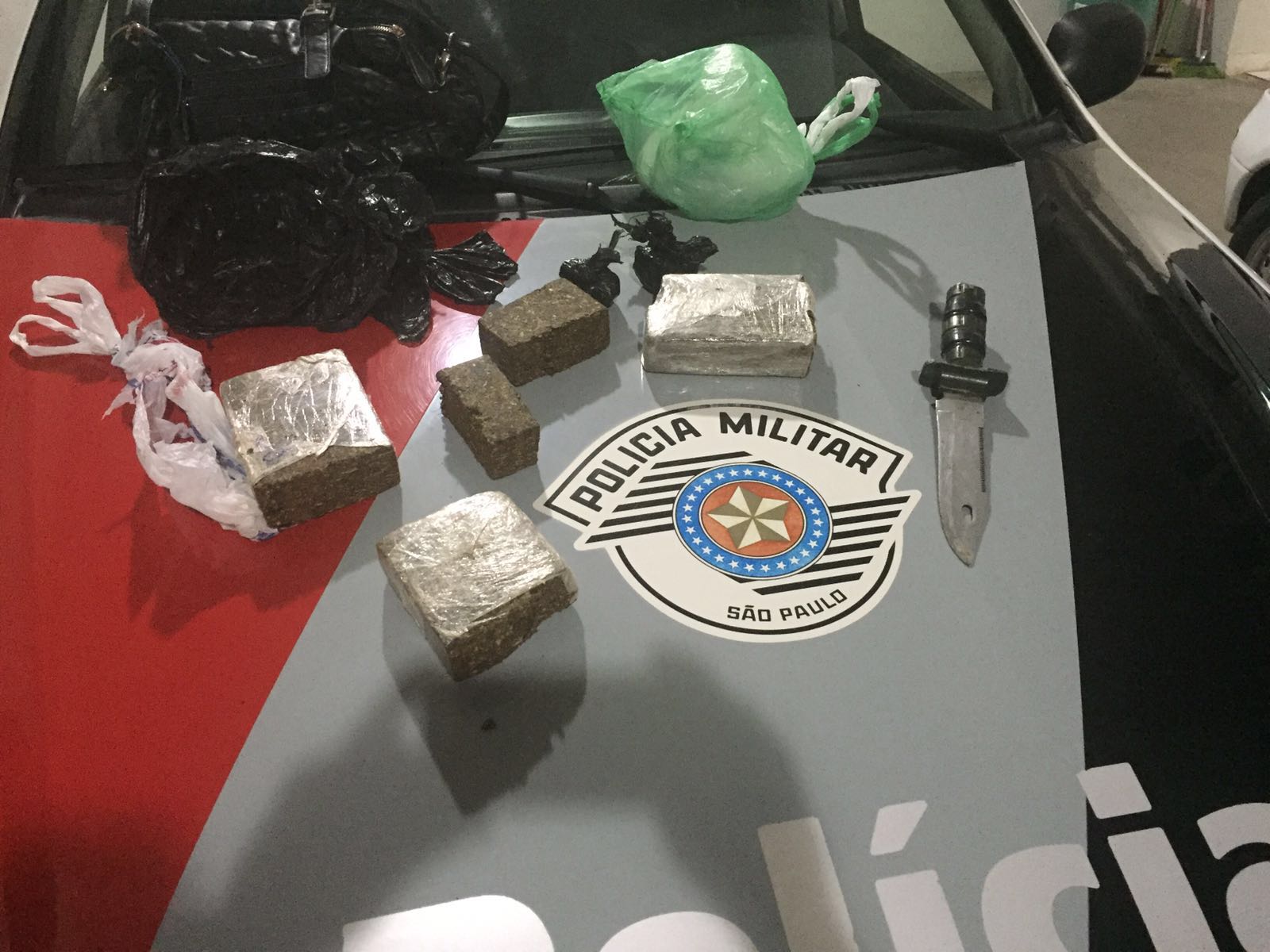 Outra equipe se deslocou até a Avenida Durval de Menezes e em vistoria no Escort, descobriu quatro tijolos de maconha, uma faca e pequena quantidade em dinheiro.