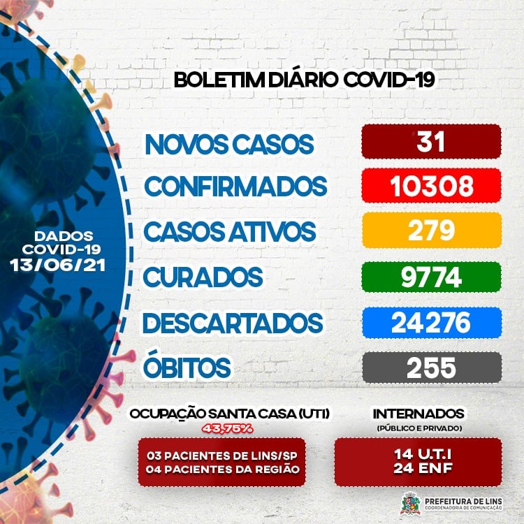 A Prefeitura de Lins (distante 73 quilômetros de Marília) informou mais três mortes por Covid-19 ontem. As vítimas são três mulheres, de 51, 56 e 75 anos.