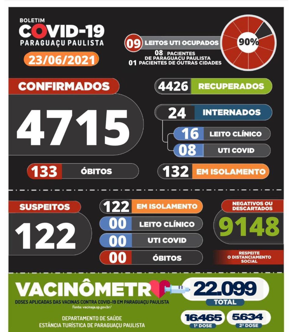 A cidade registra 4.715 casos confirmados, dos quais são 4.426 curados e 133 óbitos.