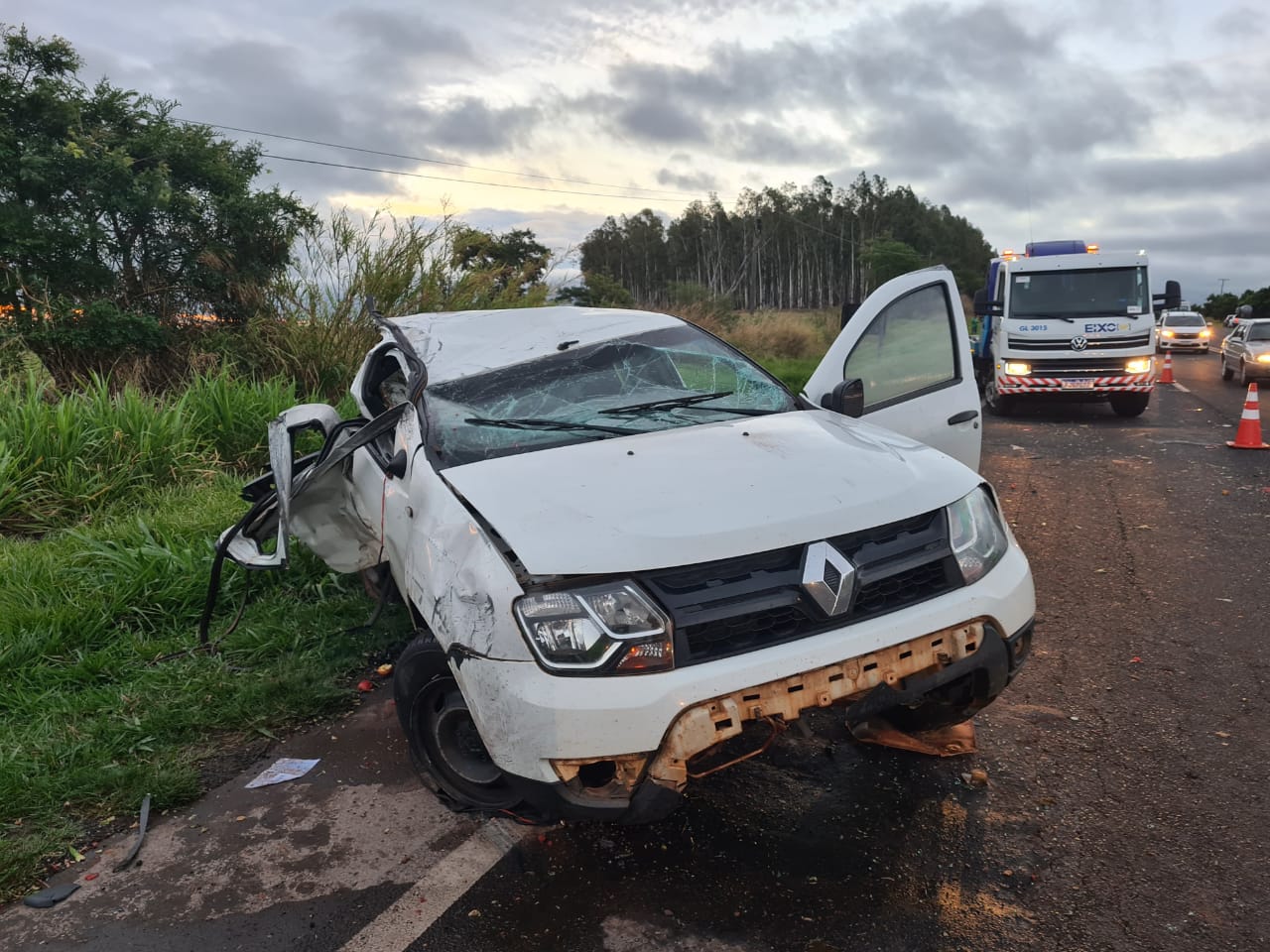 O violento acidente aconteceu no quilômetro 494 da rodovia, em trecho não duplicado, e envolveu a picape Renault Oroch da família (cabine dupla) e um caminhão baú.
