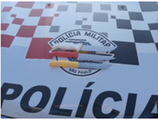 Populares informaram as características da pessoa que estaria na posse de uma faca. Os PMs fizeram patrulhamento e abordaram um indivíduo.