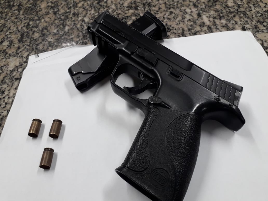 Segundo a PM após receber a informação de que um homem estaria portando um arma de fogo e que havia exibido para uma mulher, foi iniciado patrulhamento pela rua Coronel Joaquim Piza e Curitibano foi encontrado no interior de um estabelecimento comercial.