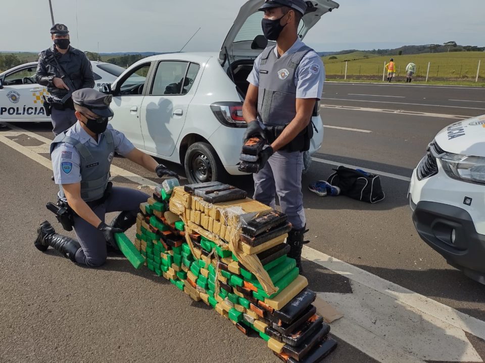 A Polícia Rodoviária Estadual (PRE) prendeu um homem e uma mulher, que não tiveram as identidades reveladas, por tráfico de drogas na manhã desta segunda-feira (21), na Rodovia Rachid Rayes (SP-333) em Marília.