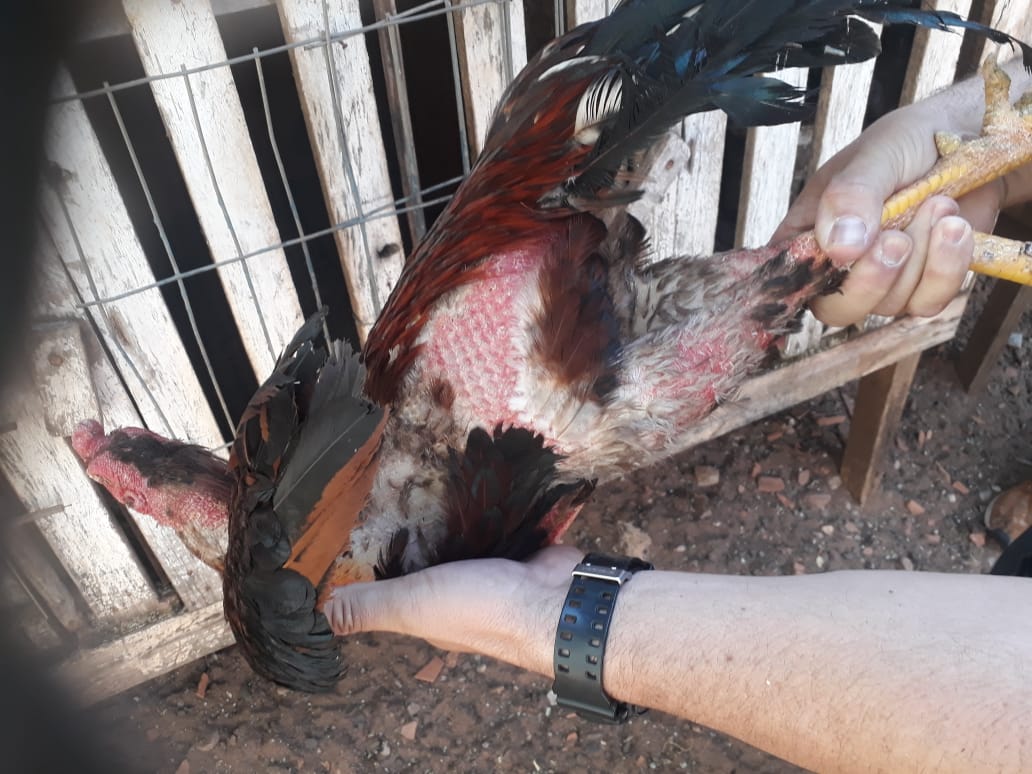 O flagrante de crime ambiental aconteceu rua Anita Garibaldi, durante averiguação de denúncia anônima. Na casa, os PMs encontraram dois galos, um com esporas serradas e outro sem penas nas pernas, peito e pescoço.
