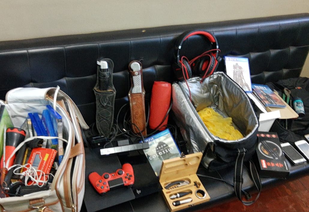 Os policiais fizeram a abordagem e no interior das bolsas encontraram vários objetos. Por se tratar de um homem já conhecido nos meios policiais pela prática de furto, ele foi questionado e não conseguiu explicar a procedência das coisas.