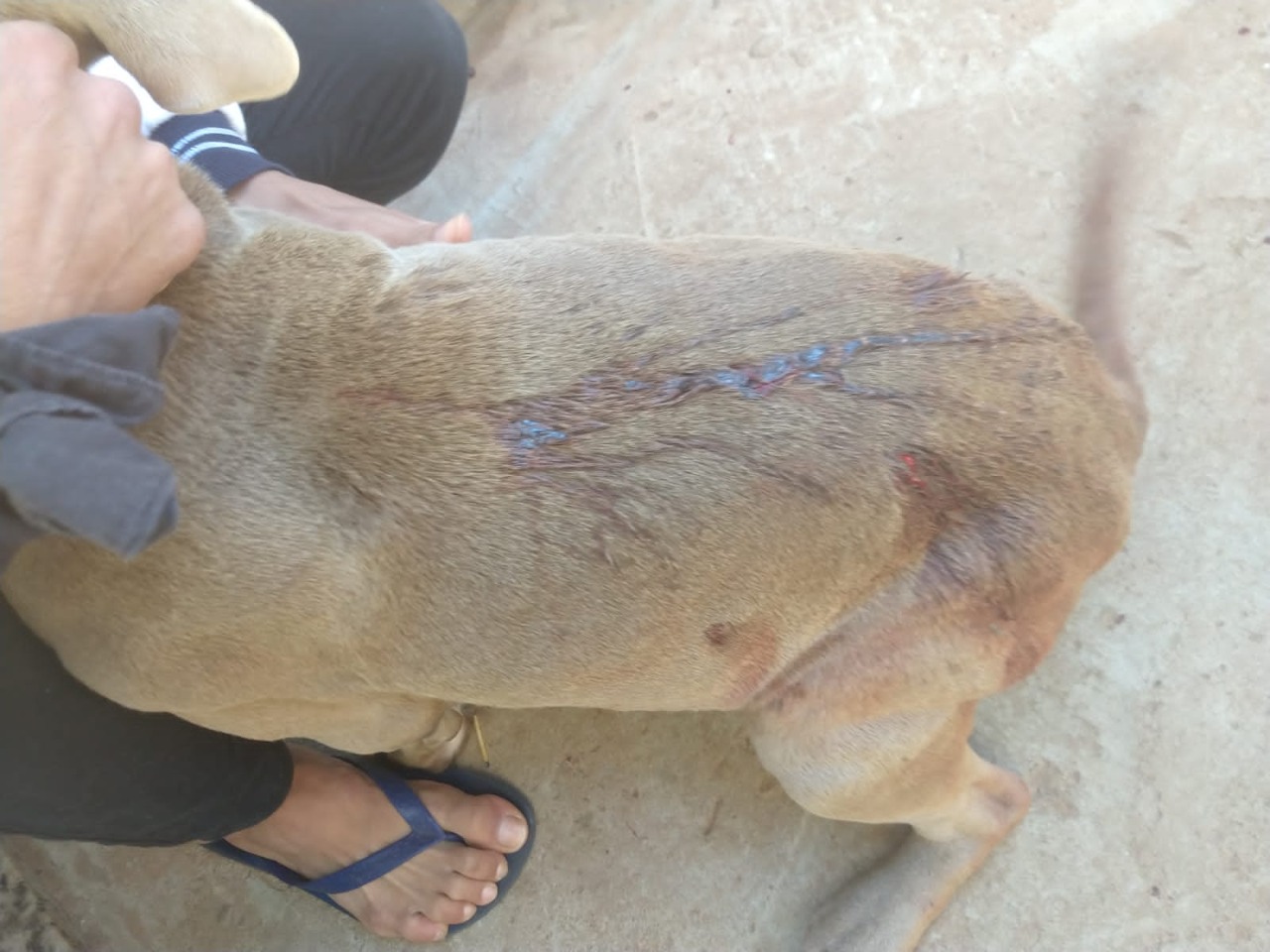 Ao retornar, o dono encontrou o animal já com os ferimentos. O cachorro foi socorrido com o auxílio de um voluntário de uma ONG, e levado para receber atendimento médico.