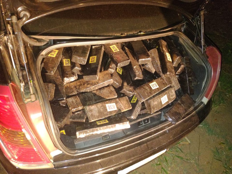 Os policiais deram ordem para que o motorista deixasse o carro. Em busca pessoal, nada de ilícito foi localizado, porém no interior do automóvel e no porta-malas havia 548 tijolos de maconha, que pesaram 429 quilos da droga.