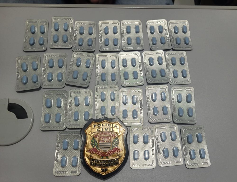 Ainda durante a ação, os investigadores localizaram em uma prateleira, atrás ao balcão do caixa, uma caixa de papelão com 24 embalagens de um suposto medicamento identificado como citrato de sildenafila, comumente utilizado no tratamento para disfunção erétil e popularmente conhecido como Viagra, com quatro comprimidos em cada cartela, totalizando 96 itens.