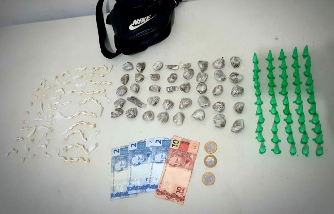 Ao perceber presença da viatura, os suspeitos saíram correndo. Um deles foi detido após, segundo os militares, jogar no chão uma pequena bolsa onde estavam as drogas e R$ 19 em trocados. Ele chegou a tentar cruzar um córrego.