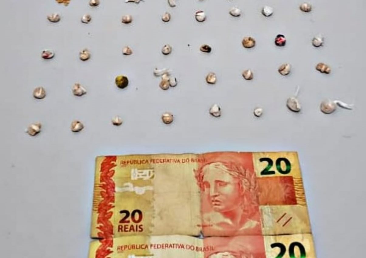 Os policiais realizaram abordagem e localizaram no bolso de sua calça, quatro pedras de crack fracionadas e embaladas para venda, um saquinho plástico com várias pequenas pedras a serem embaladas e um papelote de cocaína, além da quantia de R$ 40.