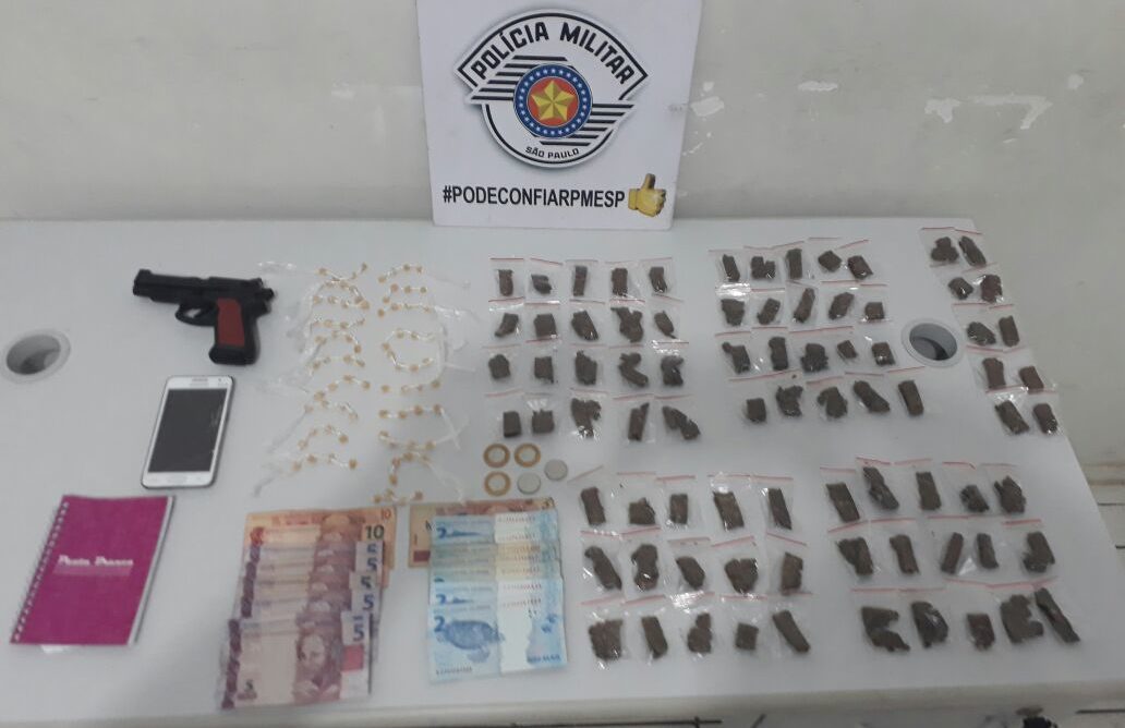 Com ele os militares encontraram R$ 73 e em sua cueca estavam oito pedras de crack embaladas em plástico transparente. Dentro do bar, em uma espécie de varanda, outras 32 porções idênticas foram apreendidas com apoio do Canil da PM.