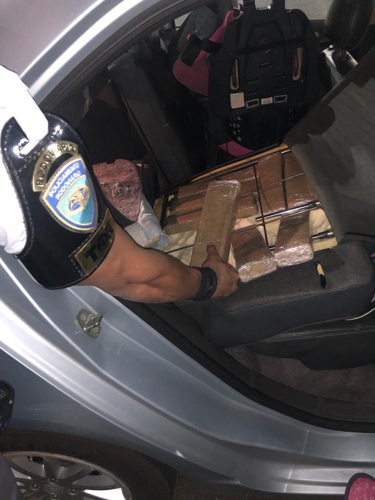 Uma equipe do Tático Ostensivo Rodoviário (TOR) abordou um carro com placas de Cuiabá/MT e notou um forte cheiro de odorizador de ambiente.