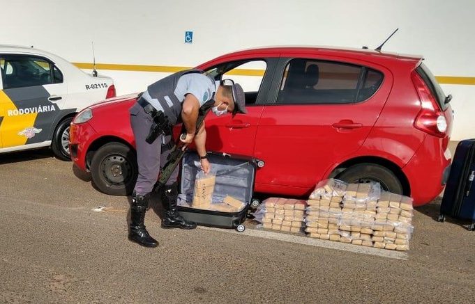 O motorista apresentou nervosismo excessivo, os policiais decidiram vistoriar o veículo e acharam duas malas contendo tabletes de maconha, que pesaram 101,140 quilos.