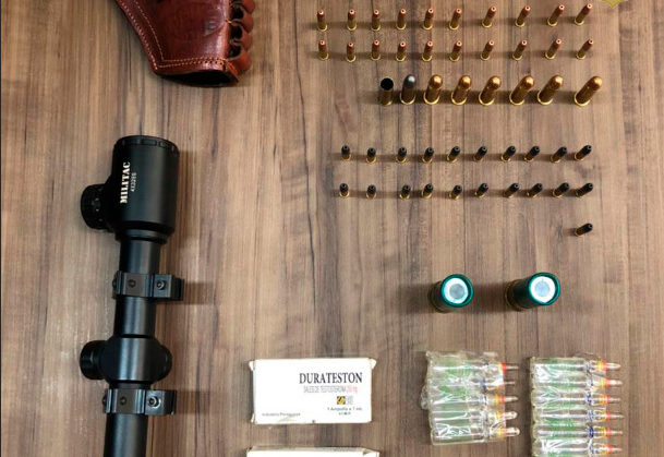 Os objetos foram apreendidos juntamente com um coldre para porte de revólver 38, uma luneta e um aparelho celular.