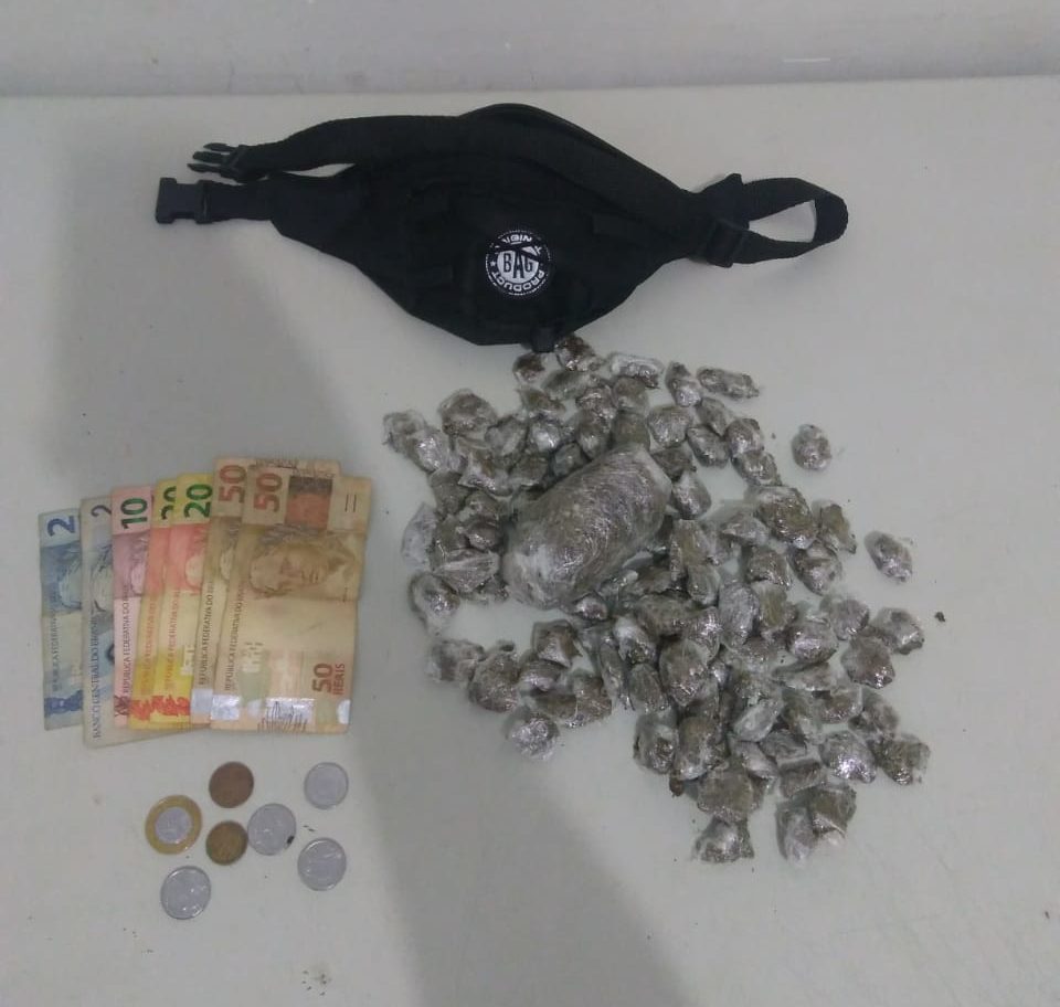 Na moto, os policiais encontraram um pacote contendo mais 102 porções da mesma droga, além de R$ 156,50.