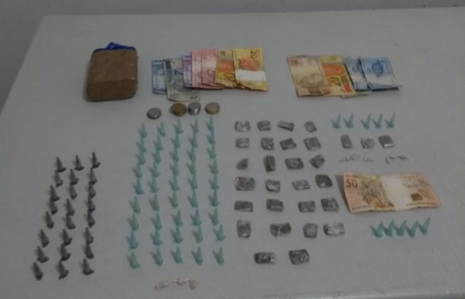 Próximo da adolescente ainda encontraram um tablete de maconha. Já com Fernando havia 10 porções de crack, três porções de maconha e R$ 74.
