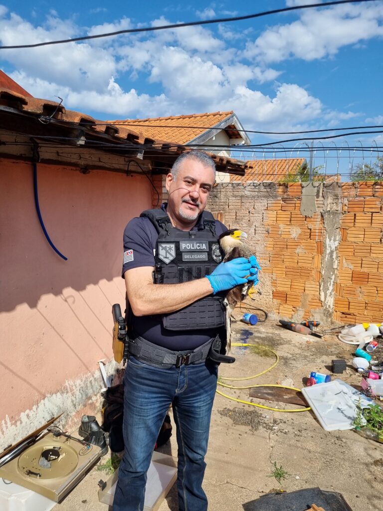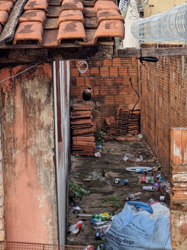 Ao chegarem ao local, por volta das 9h, policiais civis — acompanhados por militares — visualizaram, ainda do lado de fora da casa, um carcará (espécie de ave de rapina nativa do Brasil) preso em meio ao lixo doméstico, sem acesso a água ou alimento, em evidente estado de maus-tratos.