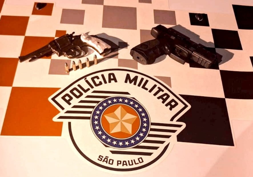 Com o homem, os policiais apreenderam um revólver calibre 32 com cinco munições intactas e uma pistola de ar comprimido de 6mm.