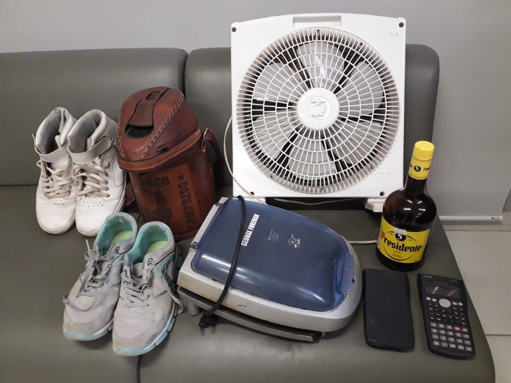 No quintal da casa, já estavam algumas trouxas com vários objetos selecionados pelo acusado. Um dos moradores do imóvel reconheceu os pertences.