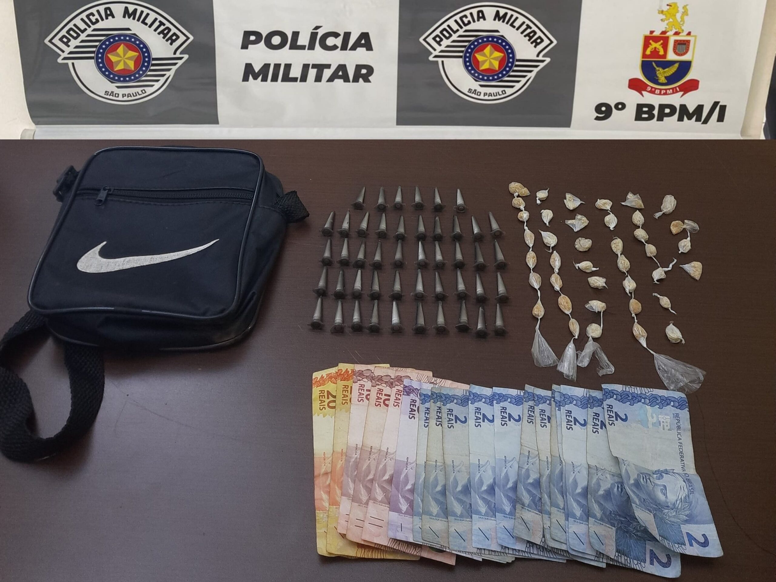 Neste domingo (30), patrulheiros fizeram uma prisão por volta das 22h30 no bairro Comerciários, em Garça. Durante abordagem a um homem em atitude suspeita, os PMs encontraram em suas roupas 42 pinos com cocaína e R$ 35, além de um aparelho celular.