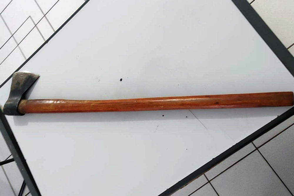 A equipe da PM foi acionada pela vítima por volta das 10h. O crime teria ocorrido quando ela estava na casa dos parentes, na rua José Avato, Jardim das Amoreiras. O homem apareceu no local, com o machado em mãos, e começou a ameaçá-la de morte na presença do filho do casal.