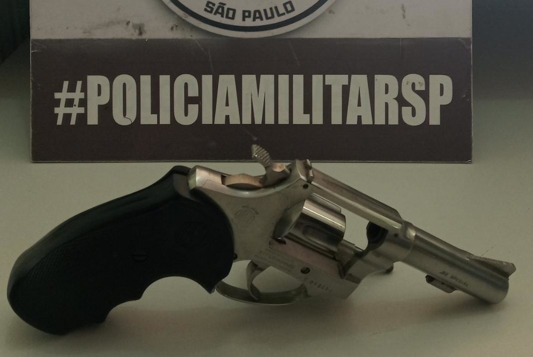 No estabelecimento, na rua Marcelino Rossini, a PM constatou que um blindex estava estourado e localizou um revólver calibre 38, municiado com quatro cartuchos intactos e um deflagrado, além de mais seis cartuchos do mesmo calibre.
