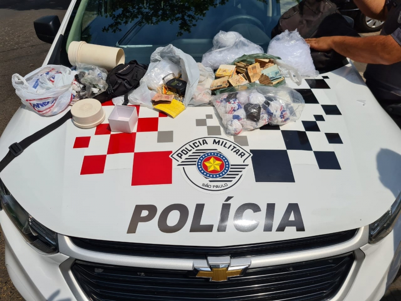 Na casa havia 833 pinos com cocaína, sete porções de maconha e oito pedras de crack, além de aproximadamente R$ 15 mil. Também foi apreendida uma faca que estaria sendo usada para ameaçar a vítima.