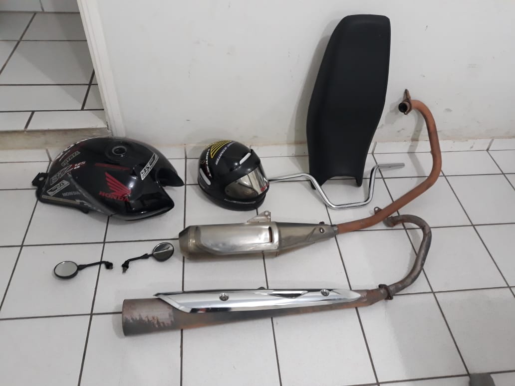 Em diligência até os endereços, os militares localizaram um capacete, tanque de combustível, um par de retrovisores, guidão e dois escapamentos.