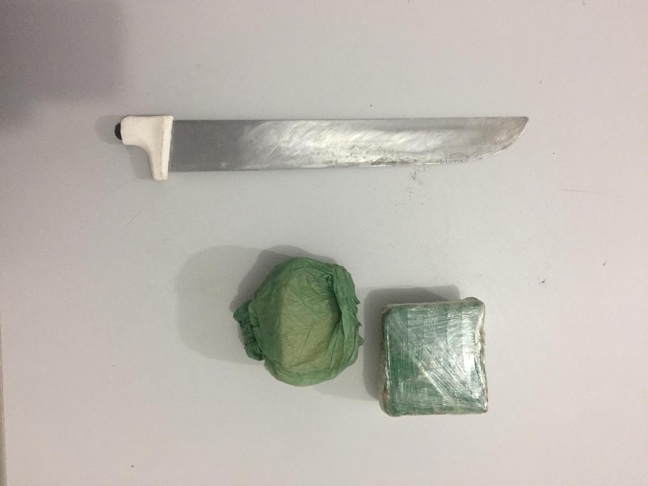 Faca e porções de maconha apreendidas (Foto: Divulgação)