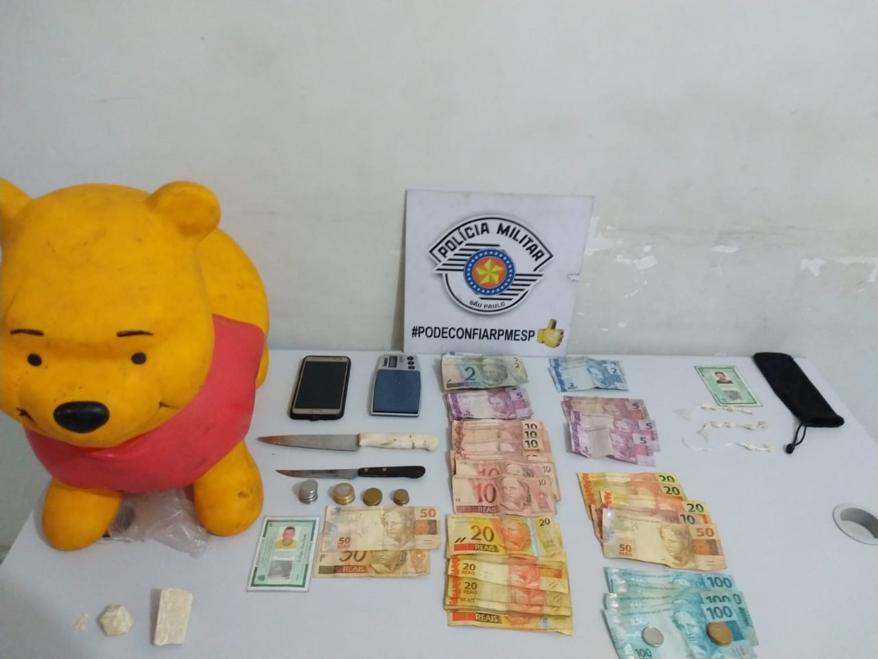 Segundo a Polícia Militar, os policiais faziam um patrulhamento preventivo quando localizaram um usuário de drogas, Edson, com dez pedras de crack no cruzamento das ruas José Bissoli e Álvaro Feijão.