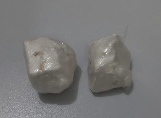 Os militares localizaram entre as pernas do passageiro do carro, duas porções de cocaína pesando 0,053 kg. O passageiro se negou a responder os questionamentos dos policiais.