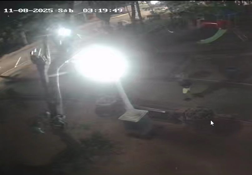 Durante a busca pessoal, nada de ilícito foi encontrado. No entanto, duas lâmpadas de LED danificadas foram apreendidas no local, e o funcionário as reconheceu como pertencentes à iluminação pública da praça.