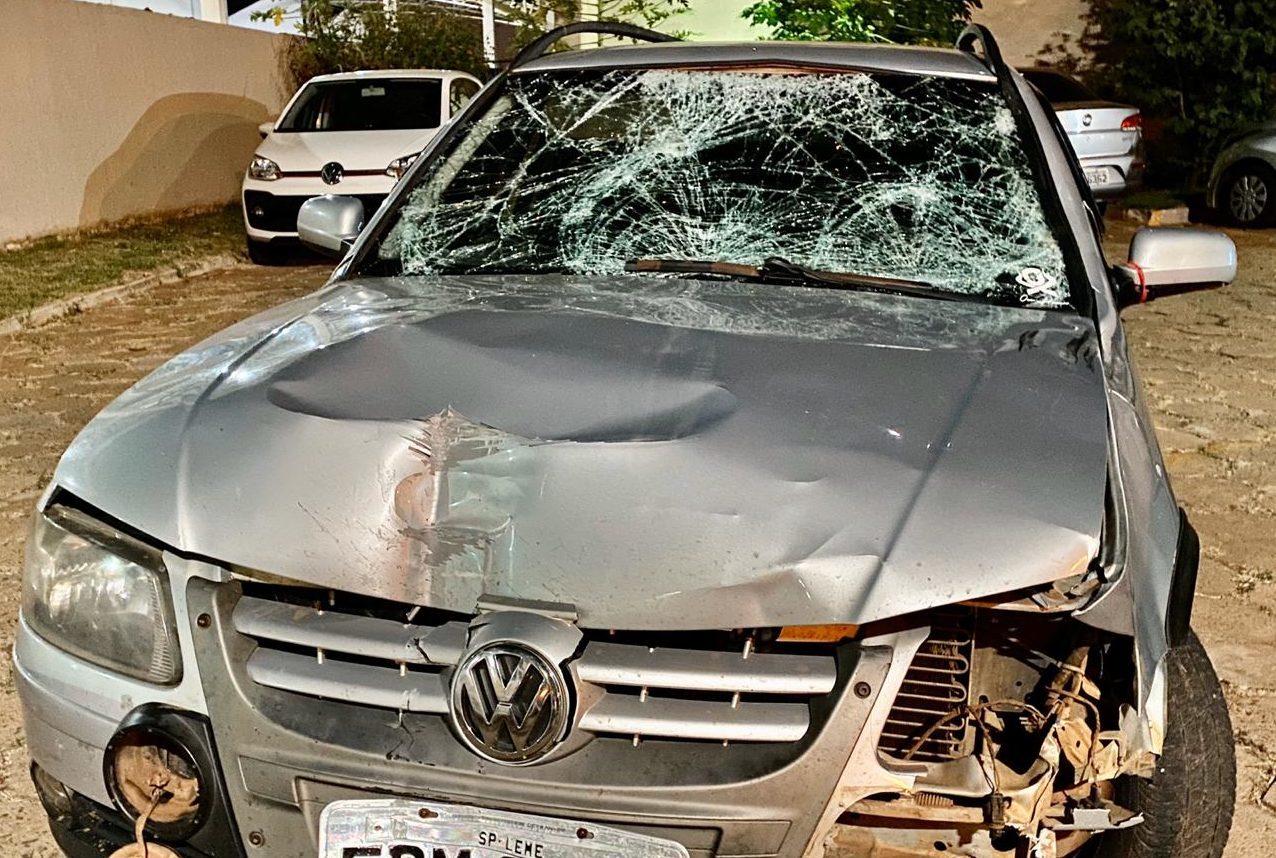 Depois do atropelamento, o motorista abandonou o veículo e fugiu correndo pelo matagal. No automóvel foram apreendidos quase 400 quilos de maconha.