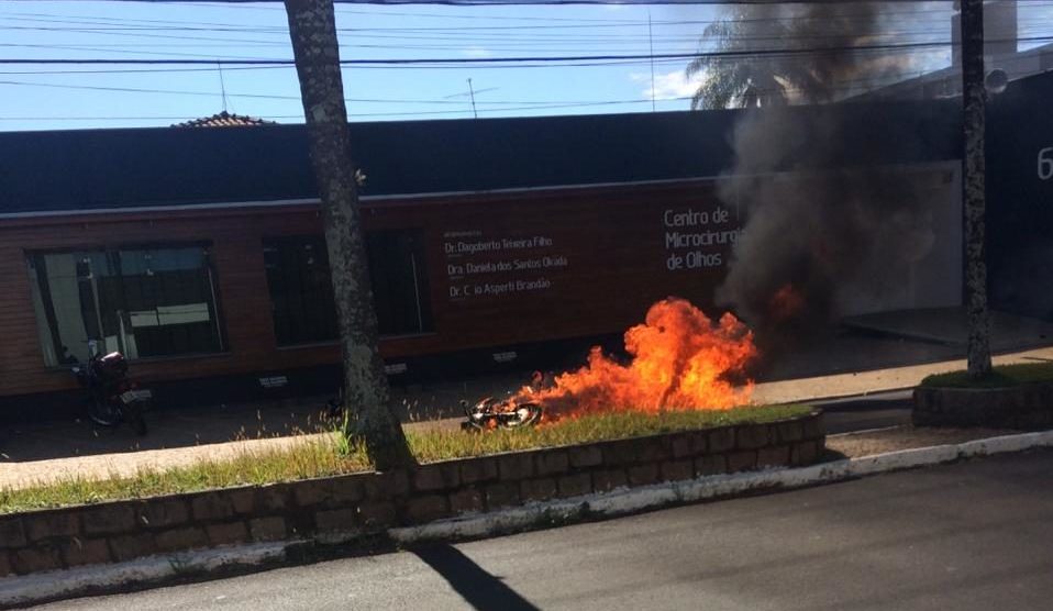 A motocicleta envolvida na colisão chegou a pegar fogo no meio da via e por isso o Corpo de Bombeiros foi acionado.
