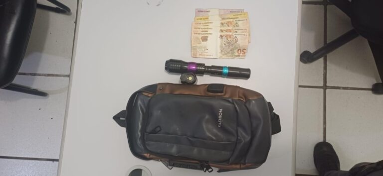 Em consulta aos sistemas policiais, os agentes constataram que o homem já era procurado pela Justiça e possuía mandado de prisão em aberto por roubo. Ele optou por permanecer em silêncio.