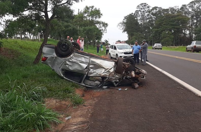 O motorista perdeu o controle do veículo em uma curva da vicinal, próximo de Assis, e bateu contra um poste e algumas árvores, capotando em seguida.