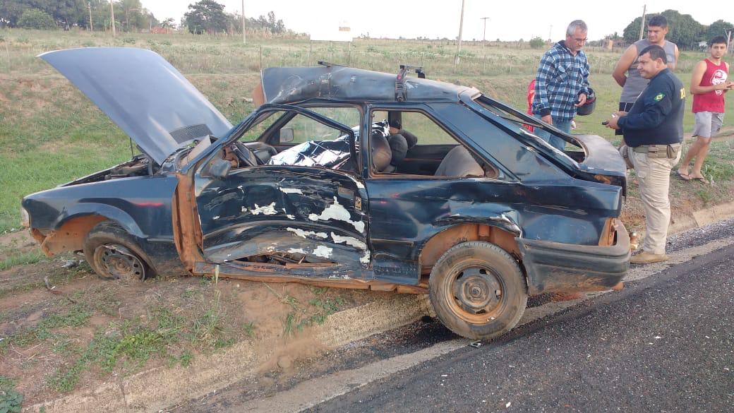 Carro foi atingido por caminhão (Foto: J Serafim Show)