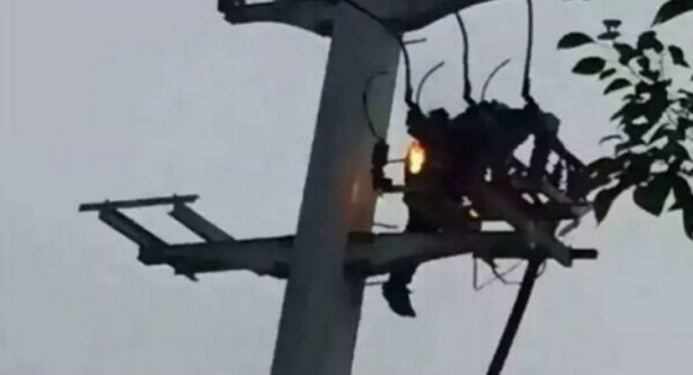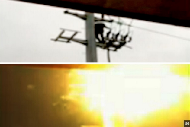 Homem sobe em poste para se matar e vira “bola de fogo”
