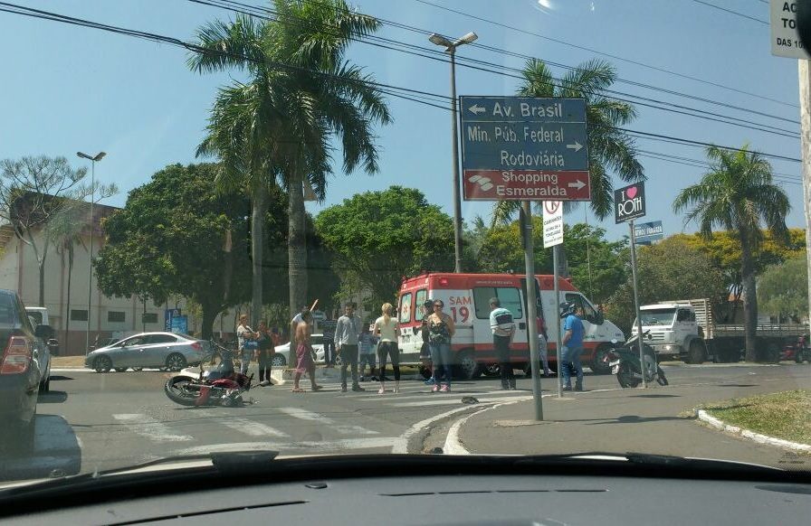 Um motociclista sofreu acidente no final da manhã desta quinta-feira (21), no começo da Avenida das Esmeraldas, zona Leste de Marília.