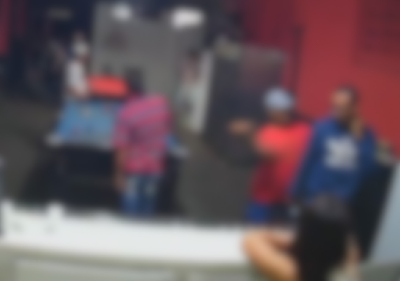 Pelas imagens, é possível observar que a vítima entra no bar usando um capacete e se dirige até o balcão. O relógio marca 1h10 da madrugada.