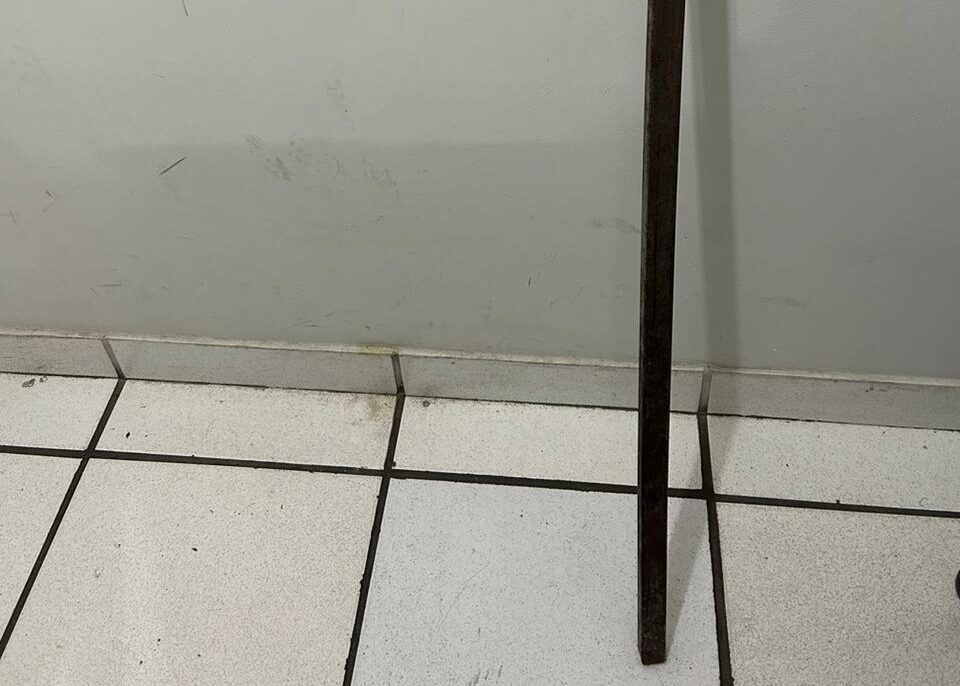 Os policiais encontraram o suspeito e conseguiram detê-lo, ainda com a barra de ferro de 1,30 metro em mãos. Ele estava visivelmente alterado e tinha falas desconexas, impossibilitando a compreensão de qualquer versão no momento da prisão.