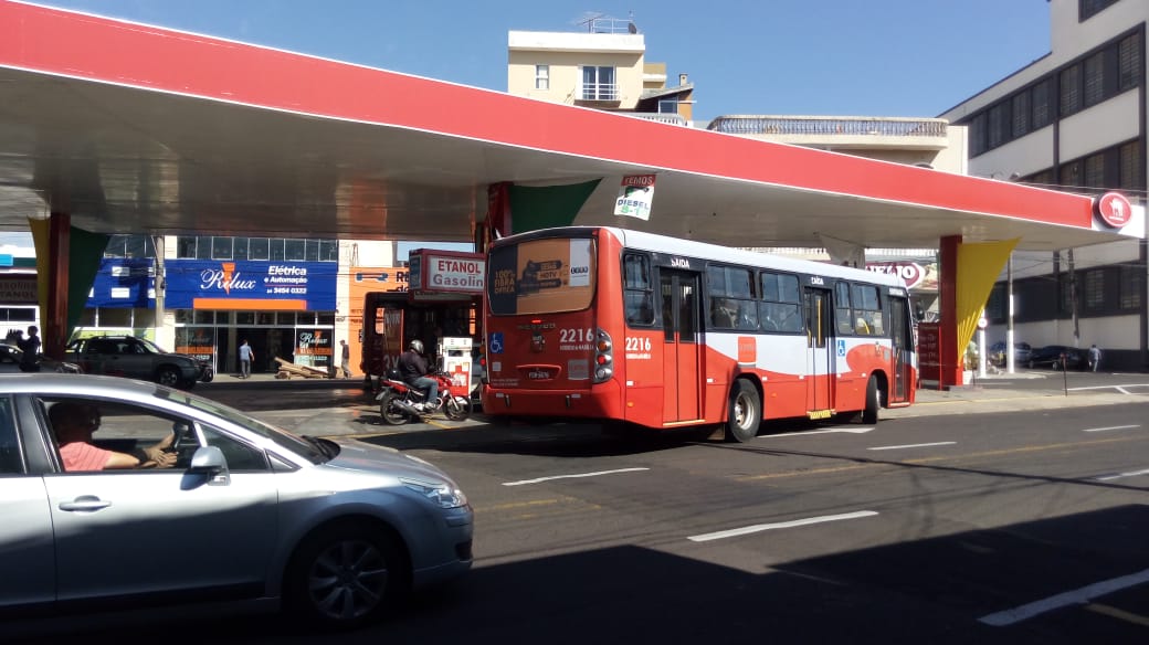Ônibus abastecendo nesta quinta-feira em Marília (Foto: Divulgação)