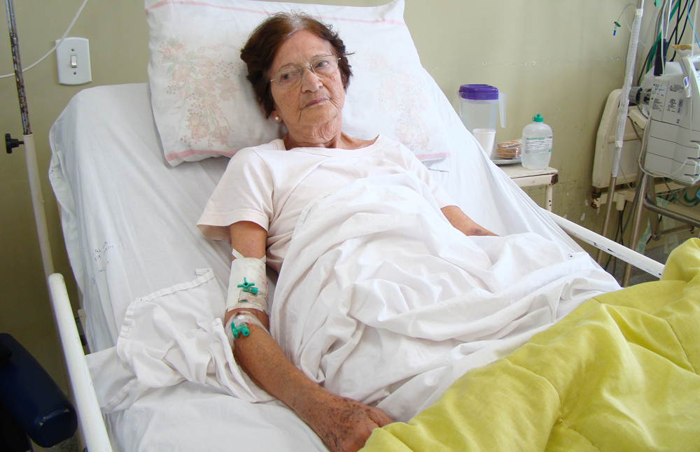 Um dos símbolos da fase absurda pela qual passa a saúde pública e do caos instalado no hospital, é a aposentada Lourdes Witzel, de 78 anos. Lourdes quebrou o fêmur em um acidente doméstico no último dia 24 de maio e desde então está internada no HC no aguardo de uma cirurgia para reparar a lesão.