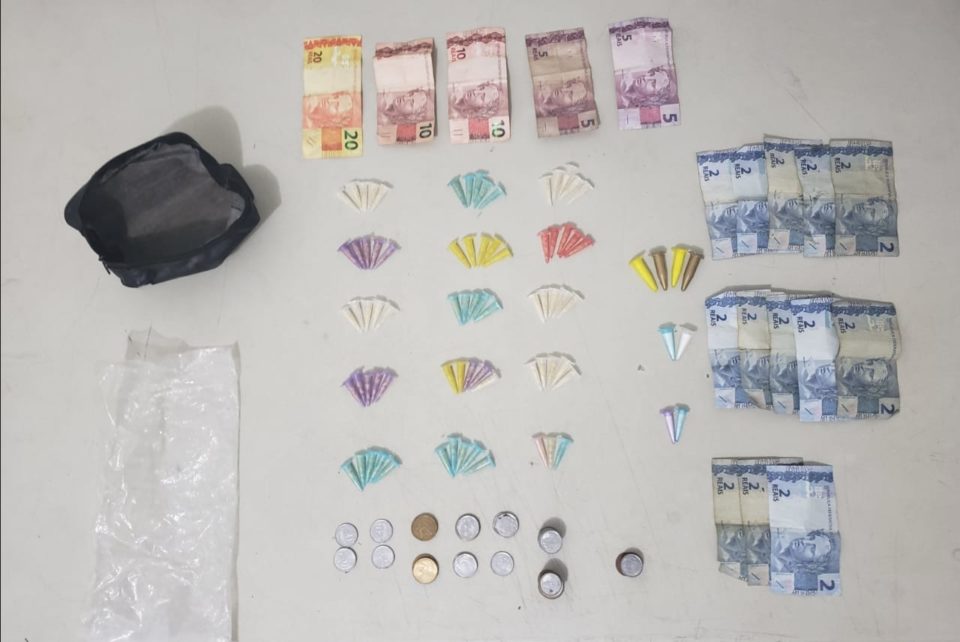 Ao perceber a viatura, o condutor da moto saiu em disparada, não sendo possível abordá-lo. O idoso foi revistado e com ele havia uma pochete contendo oito pinos com cocaína, 73 pinos com crack e R$ 83,30.