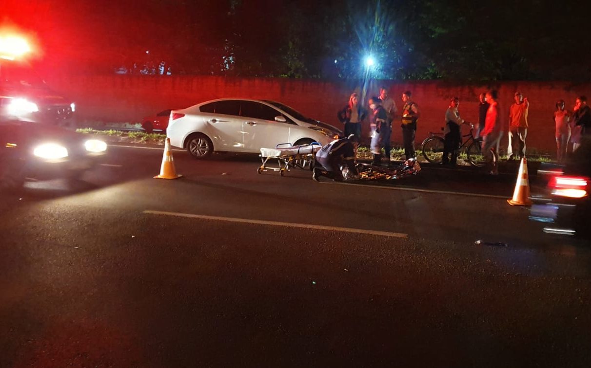A polícia foi acionada às 18h30, no quilômetro 376, com a informação de acidente envolvendo moto e bicicleta.